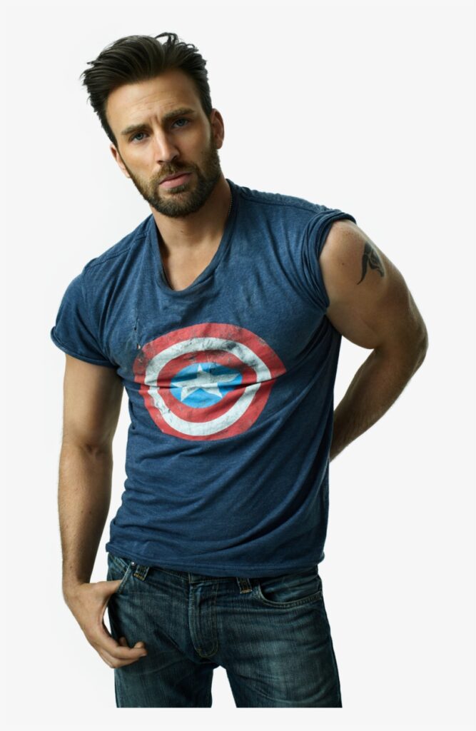 Chris Evans walks into any room and instantly resets the standard for handsome. Evans has that rare mix of boy-next-door warmth and superhero-level heat — the soft smile, the strong jawline, the shoulders that deserve their own zip code, and the kind of eyes that make you forget whatever you were doing before he showed up. He radiates calm confidence with a playful streak that makes him even more irresistible. Every time he laughs, smirks, or casually brushes his hair back, he gives pure Man Candy energy without even trying.